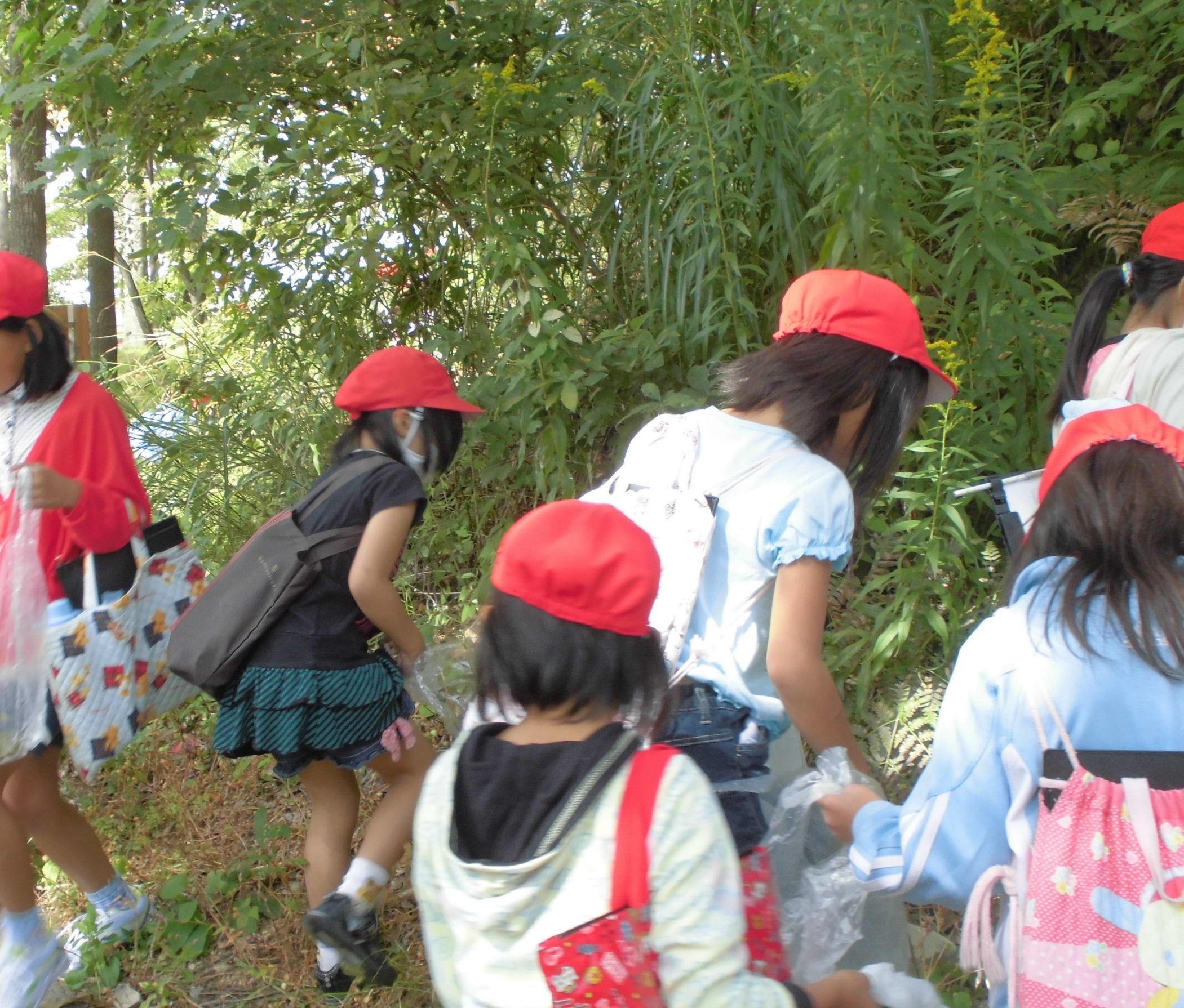 【小学校3年生の環境学習サポート】 学校との打ち合わせで、「いつ」「どこで」「どんな内容で」などを打合せ、 花実の森での受け入れ学習の他、学校近隣でも自然の環境体験学習に適したところ がある場合は、そこでのプログラムで実施してきました。
